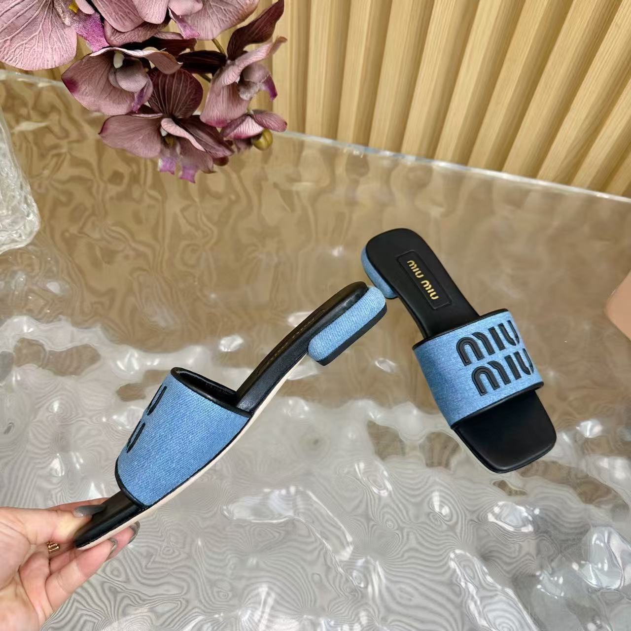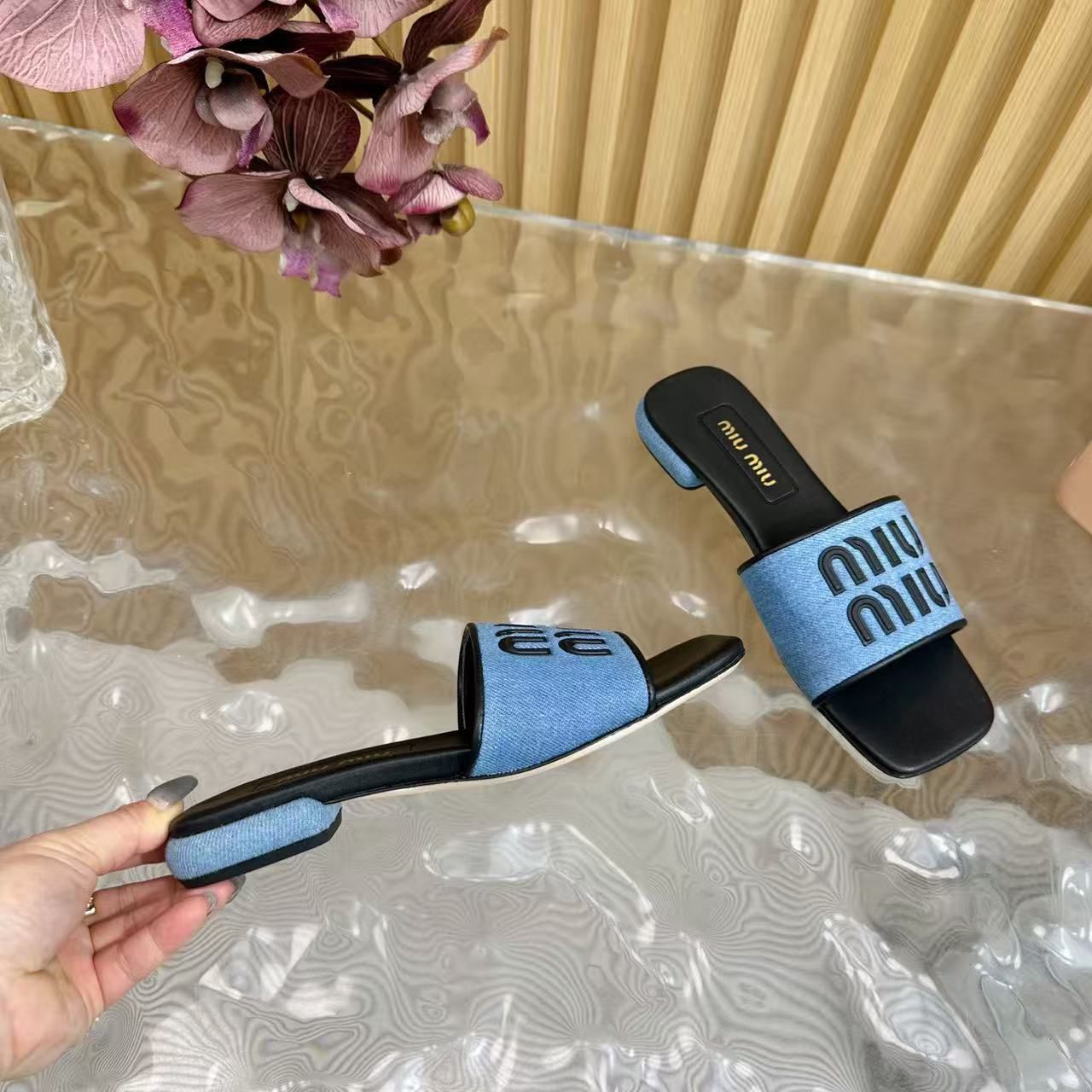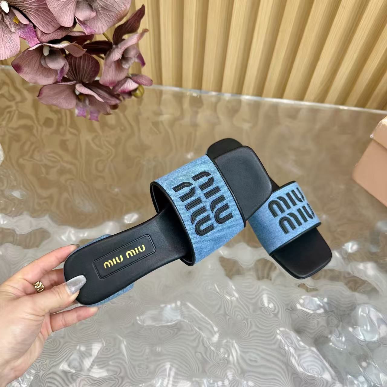 DENIM BLACK LOGO SLIPPER