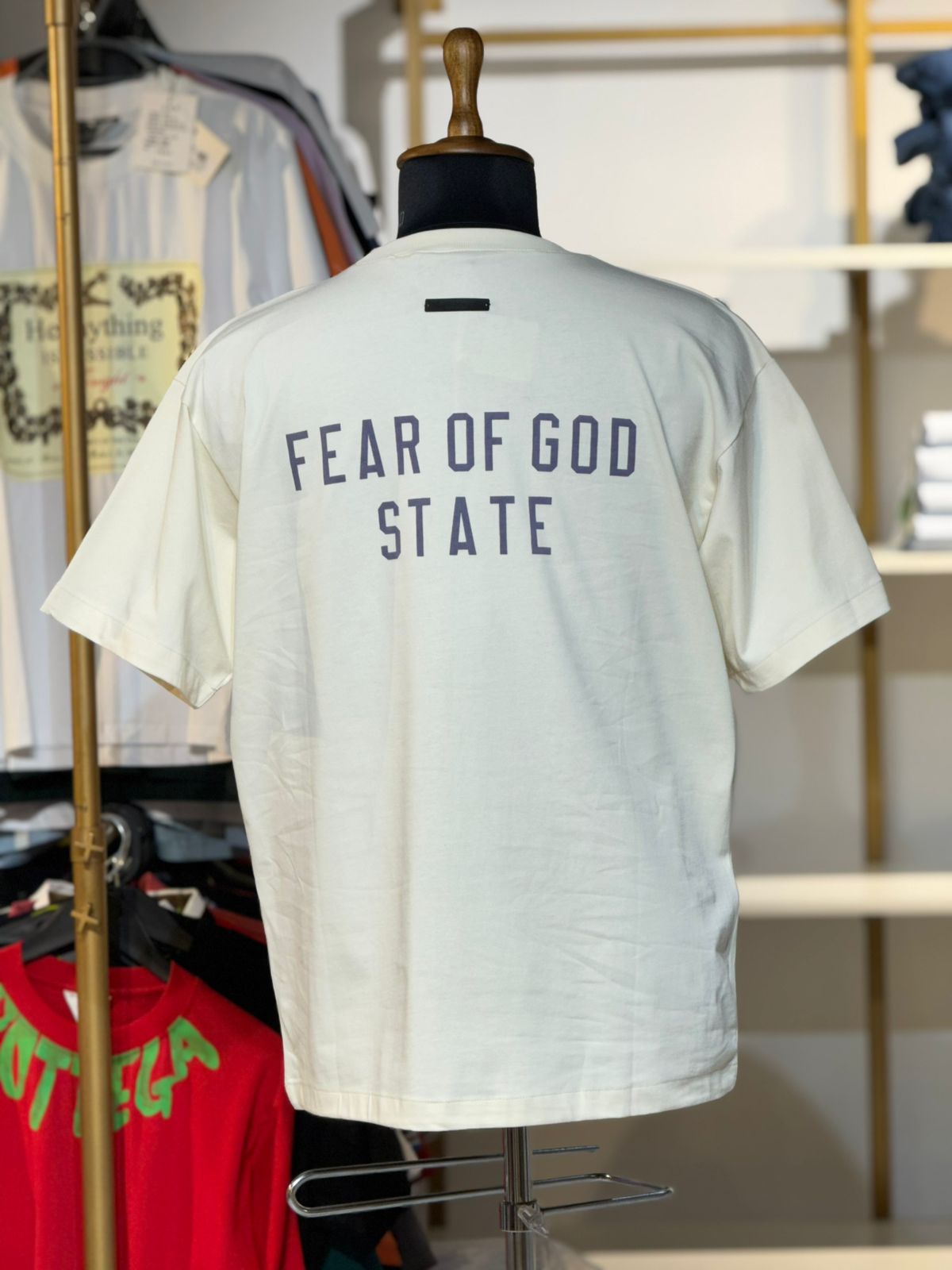 A clean front and a striking STATE print across the back give this crewneck a sharp street-luxe attitude. Oversized comfort meets effortless style.