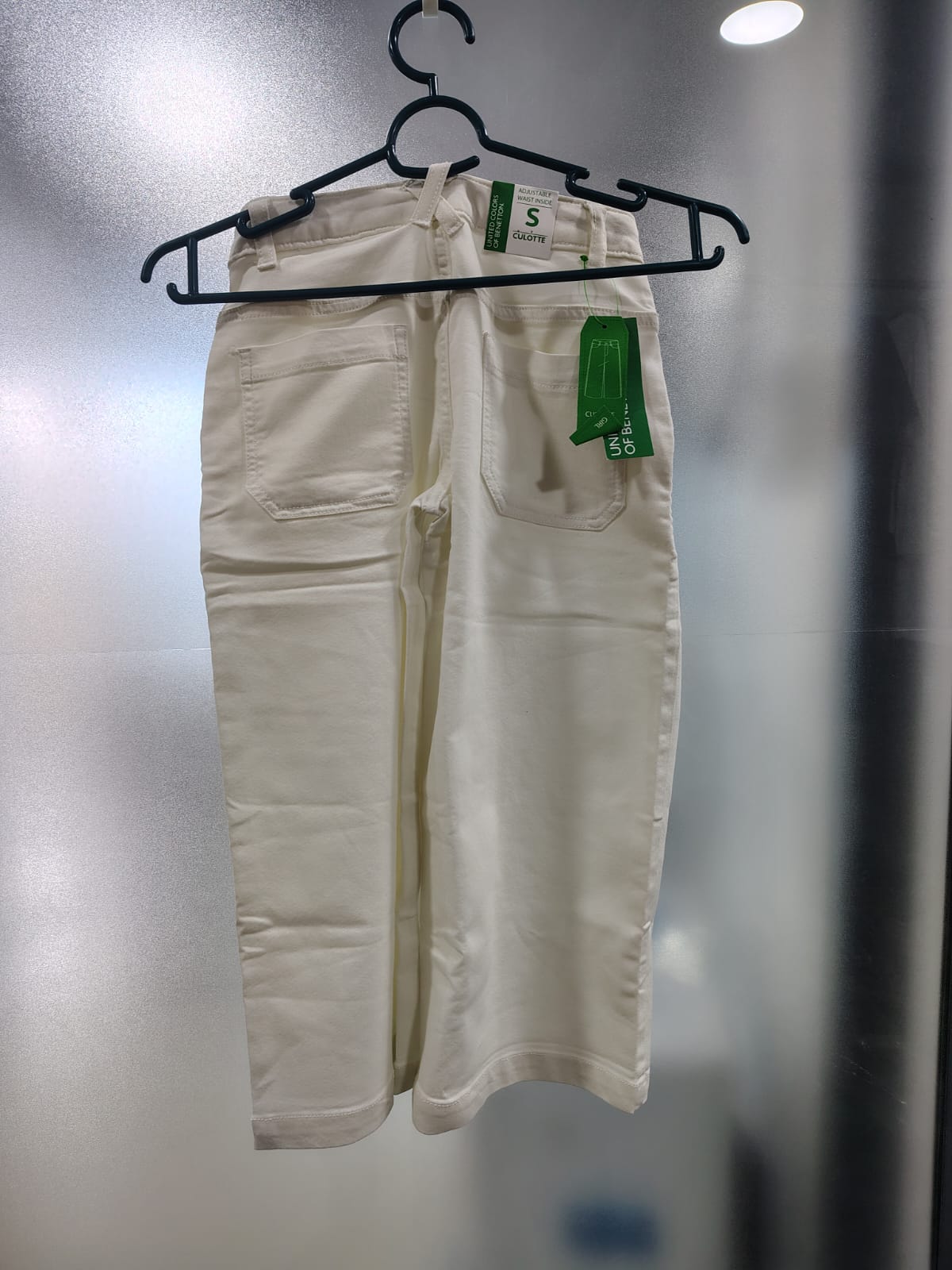 Crisp white bell-bottom pants with a flared silhouette and clean, minimal design, perfect for casual or semi-formal outfits.