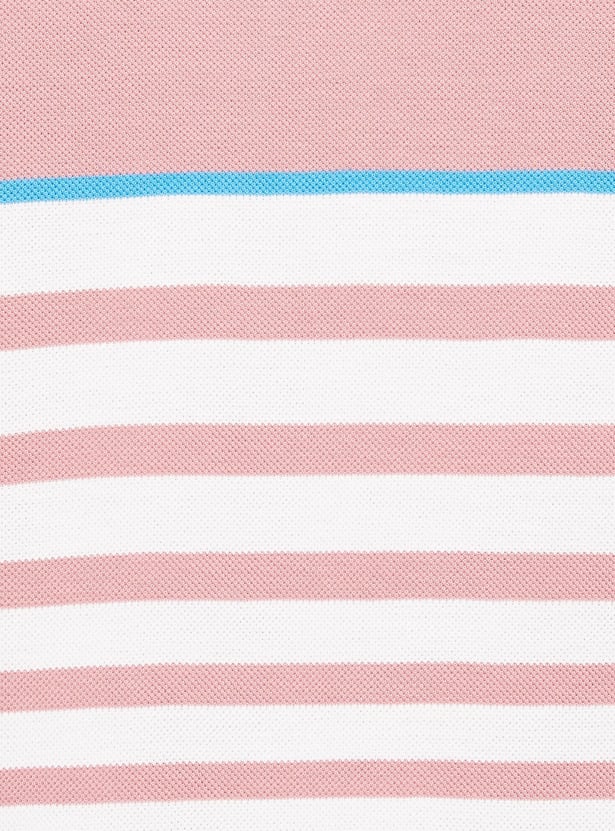 Smarten up your casual style with this striped polo t-shirt that is designed with a polo collar, button closure and short sleeves.