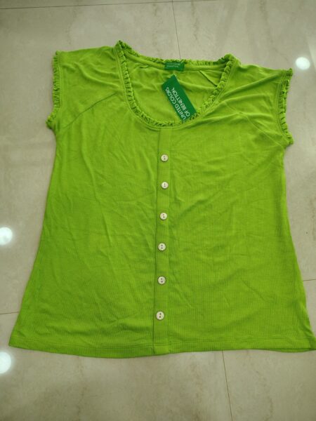 Elevate your everyday look with this United Colors of Benetton green ribbed top featuring a stylish V-neck and button-front design. Crafted for comfort and a flattering fit, it’s perfect for casual wear or easy layering.