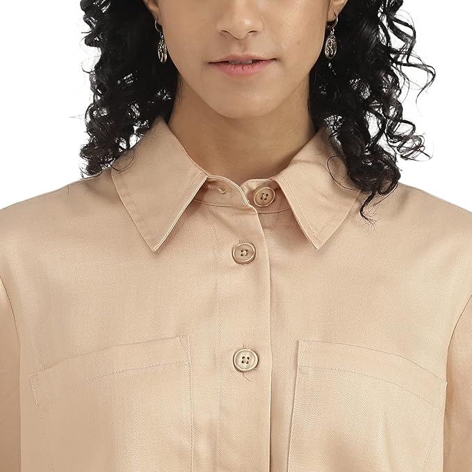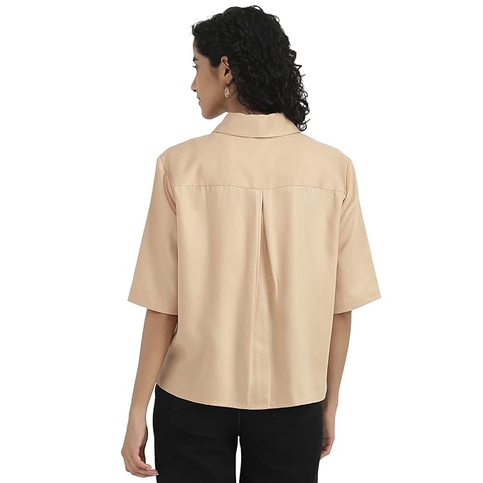 Solid Spread Collar Women Tops