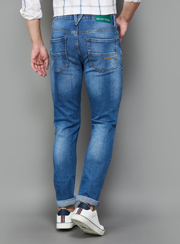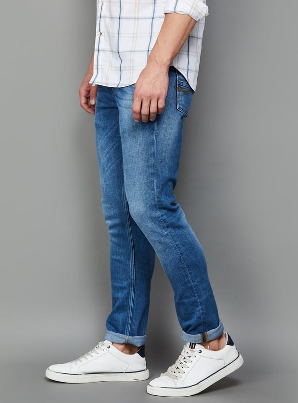 Men Skinny Fit Faded Jeans crafted from stretchable denim for a sharp, streamlined fit and all-day comfort. The trendy faded finish adds a modern edge, making them perfect for casual and street-style looks.