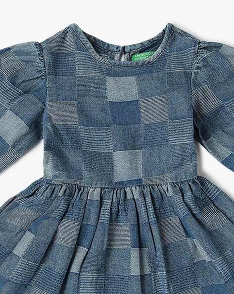 The UNITED COLORS OF BENETTON Girls Checked Fit & Flare Dress showcases a charming check pattern with a breezy, flared silhouette. Made from soft, comfortable fabric, it’s perfect for everyday wear or special outings.
