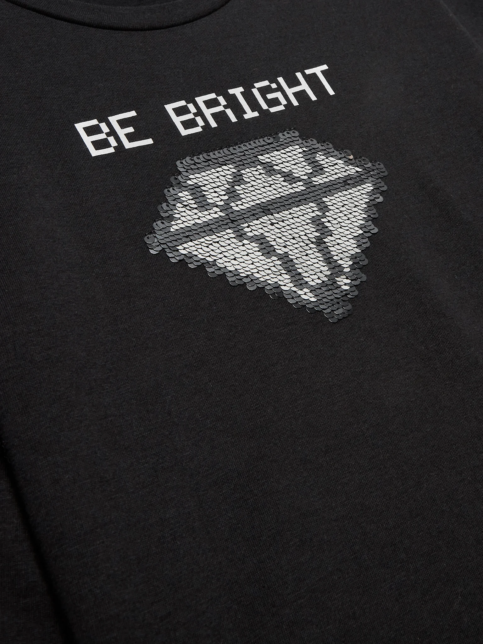 Elevate her everyday style with this United Colors of Benetton black embellished T-shirt, crafted from soft, premium fabric for all-day comfort .