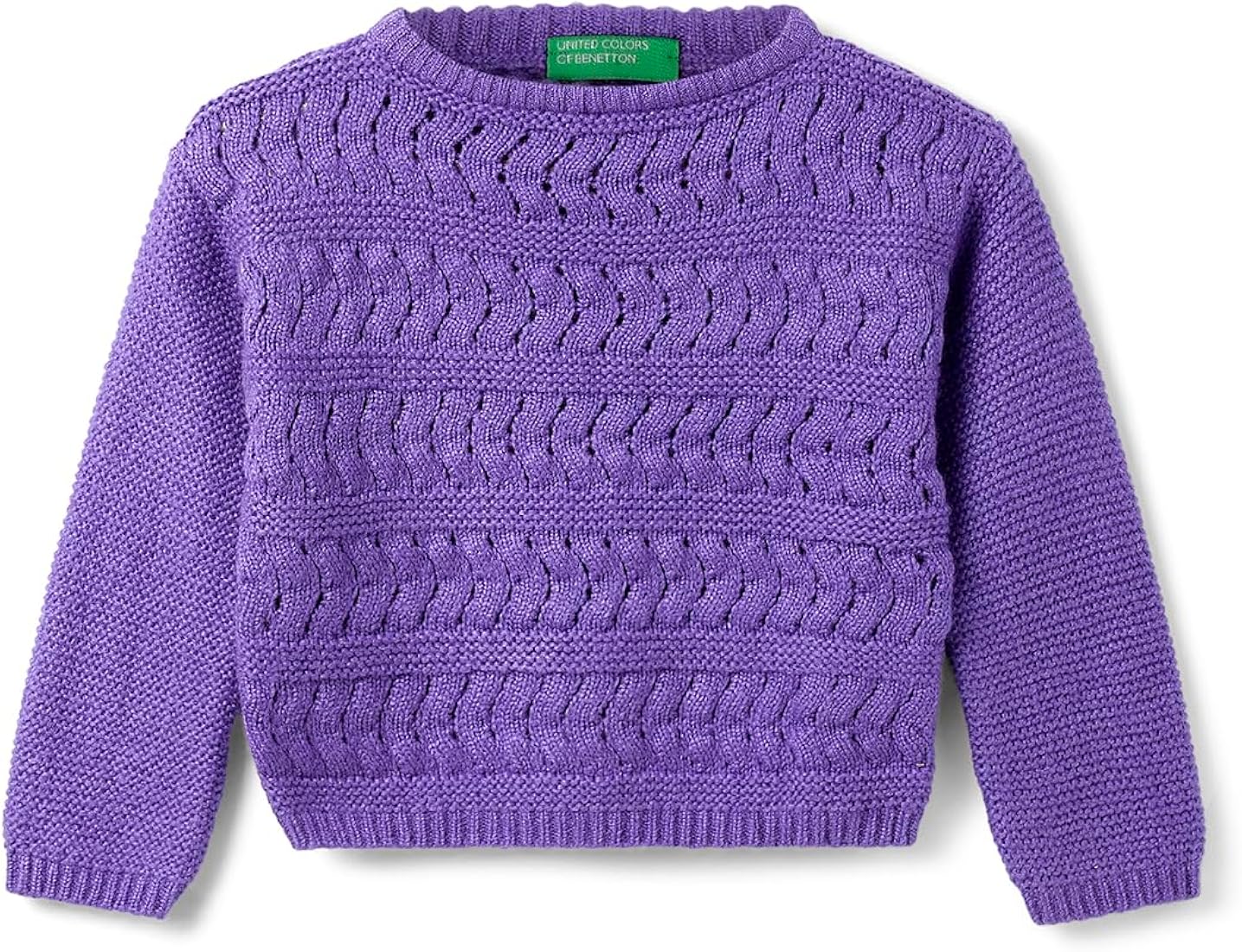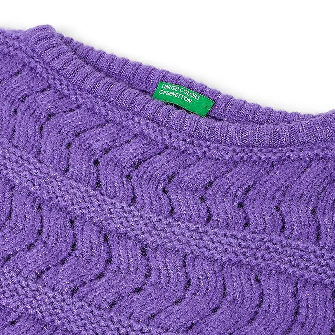 United Colors of Benetton Girl’s Cropped Fit Round Neck Cable Knit Sweater