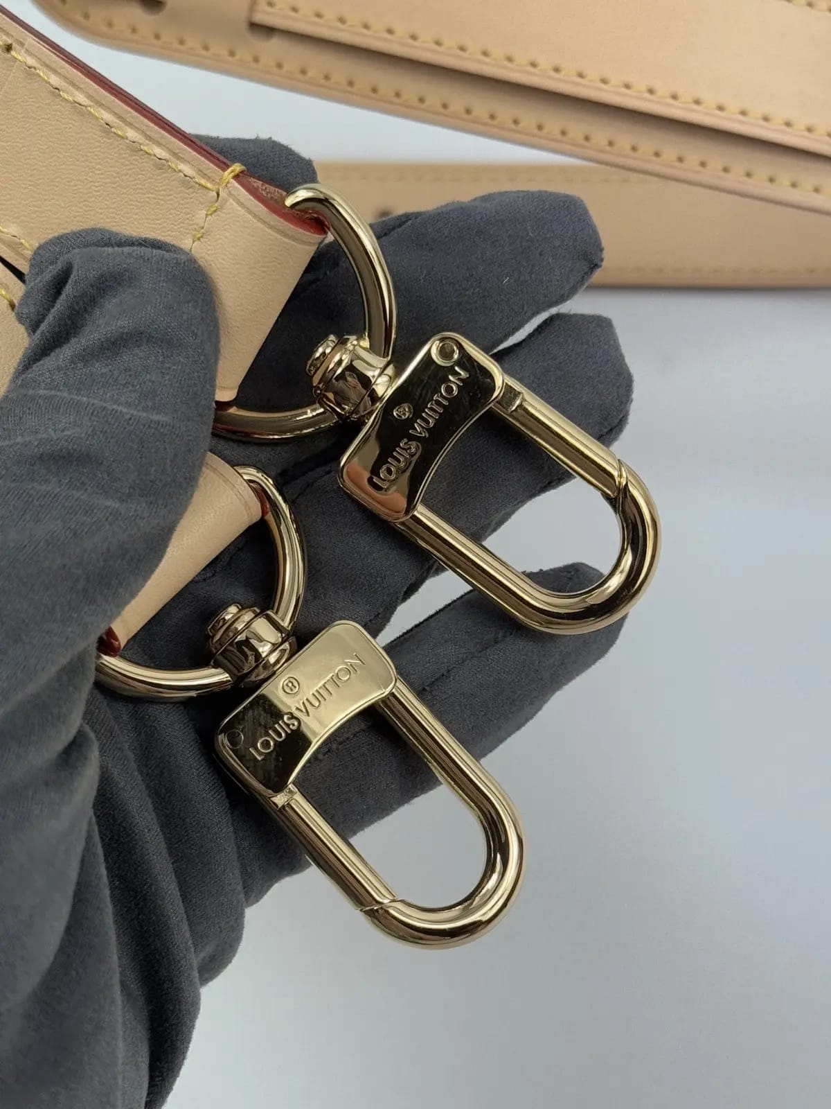 Polished gold-tone hardware with a lockable zipper closure for added security