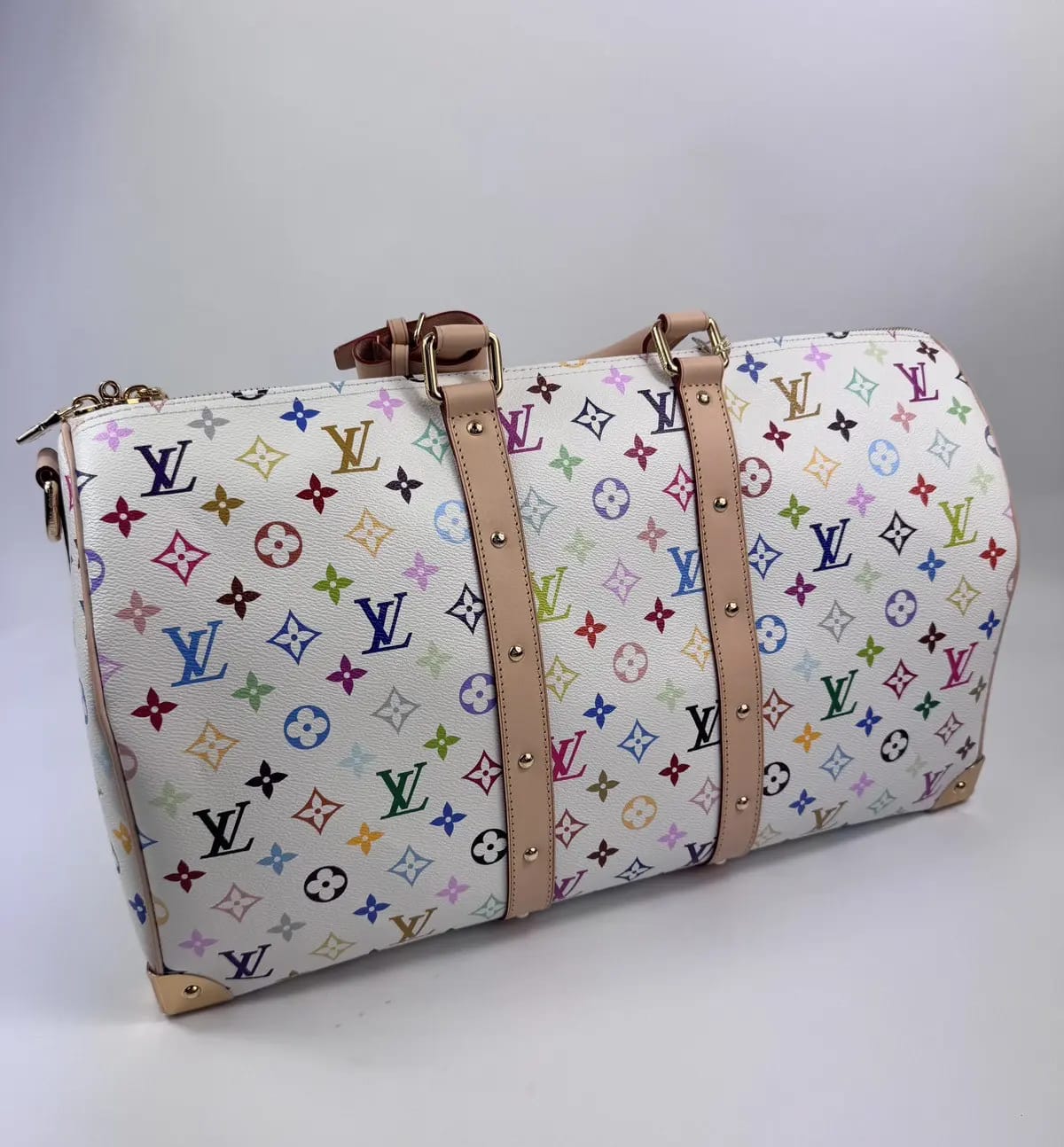 This duffel bag is a vivid celebration of timeless luxury infused with playful charm. Crafted with a structured silhouette and adorned with a lively multicolor monogram pattern, it brings both elegance and energy to every journey. Perfect for weekend getaways, gym sessions, or on-the-go styling, it serves as a standout statement piece that seamlessly merges fashion with function.